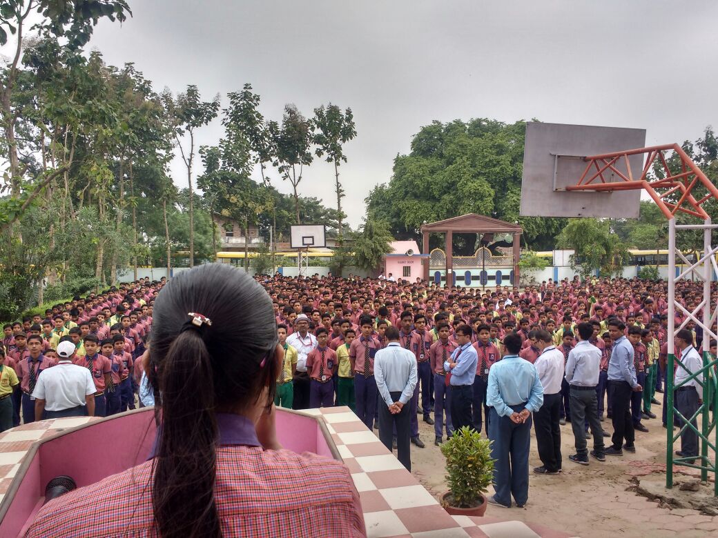Before the commencement of regular class work, morning Assembly is held in the School Ground. The Assembly aims at:
